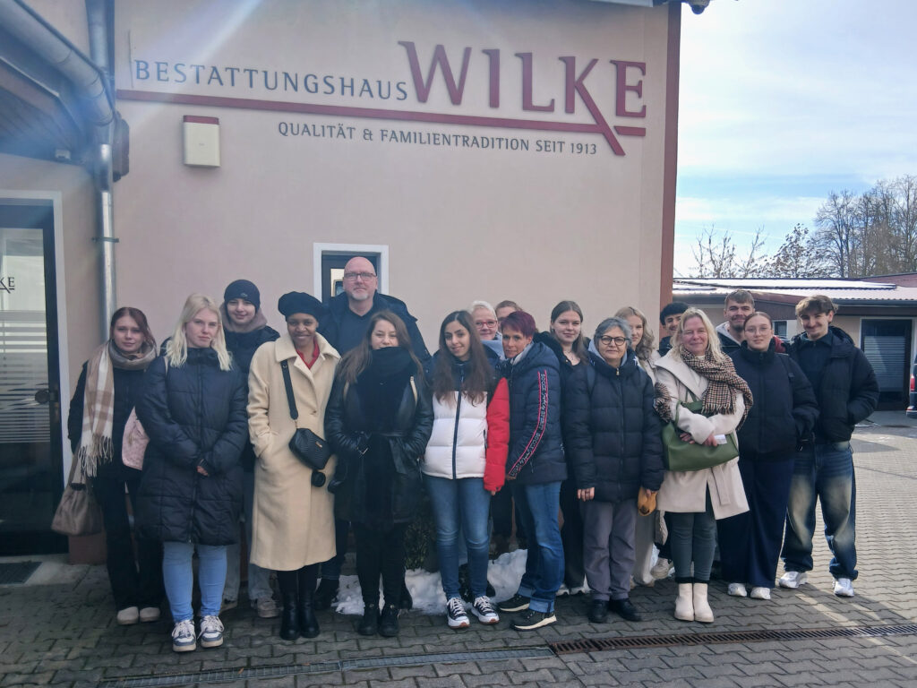 Am 20.02.2026 vertieften wir diese Inhalte im Rahmen einer Exkursion zum Bestattungsinstitut Wilke. Herr Wilke gewährte uns einen umfassenden Einblick in das Berufsbild des Bestatters und erläuterte sensibel die Abläufe nach einem Sterbefall – von der ersten Kontaktaufnahme mit den Angehörigen bis zur Gestaltung einer würdevollen Abschiedsfeier.