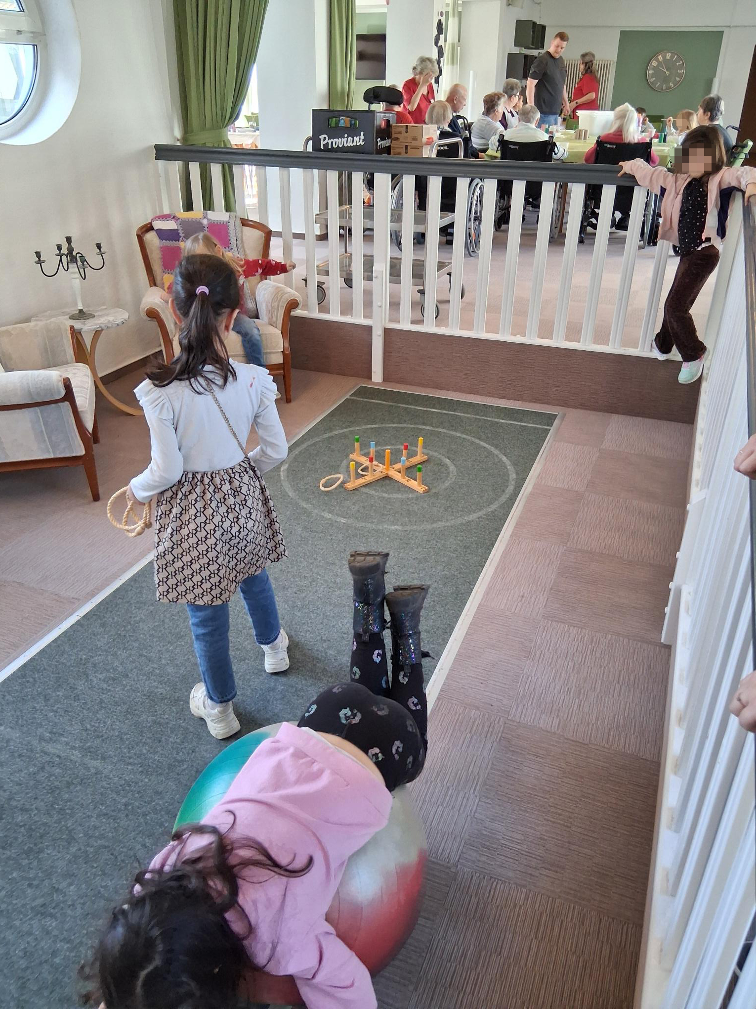 Während der Trocknungszeit der Bastelarbeiten wurde es keineswegs langweilig: Der Kicker-Tisch wurde ausgiebig genutzt, beim Ringe werfen war Geschick gefragt und auch das gemeinsame Ballspielen sorgte für viel Bewegung und gute Laune.