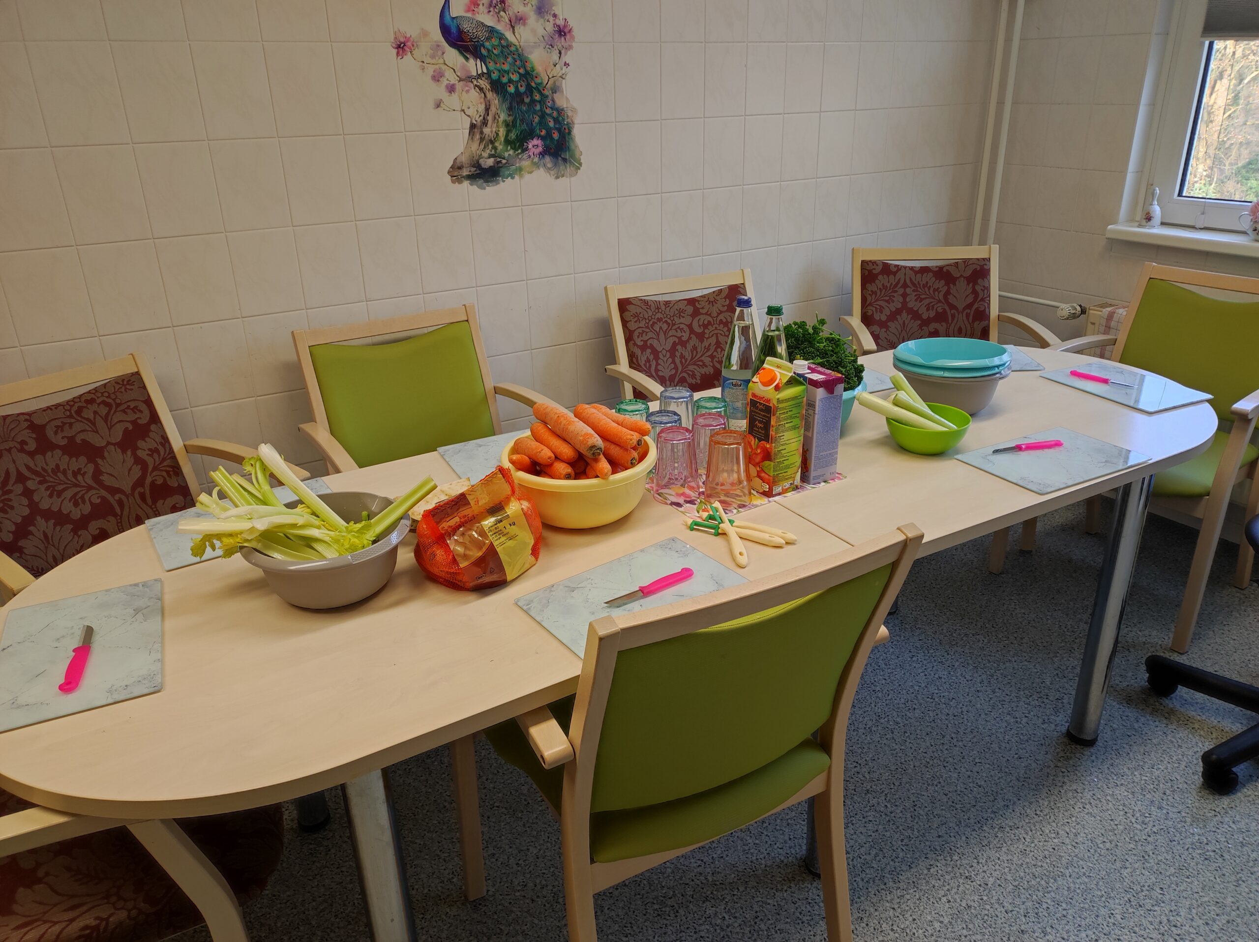Schon immer hatten die Bewohnerinnen und Bewohner Freude am Kochen. Im großen Saal schlossen sich zahlreiche Kochfreundinnen und -freunde zusammen, schnitten, schnibbelten und bereiteten vor. Doch das reichte vielen nicht und so wurde nach langem Überlegen und Planen eine Küche speziell zu diesem Zweck eingerichtet – eine Bereicherung, die von den Bewohnerinnen und Bewohnern sehr geschätzt wird.