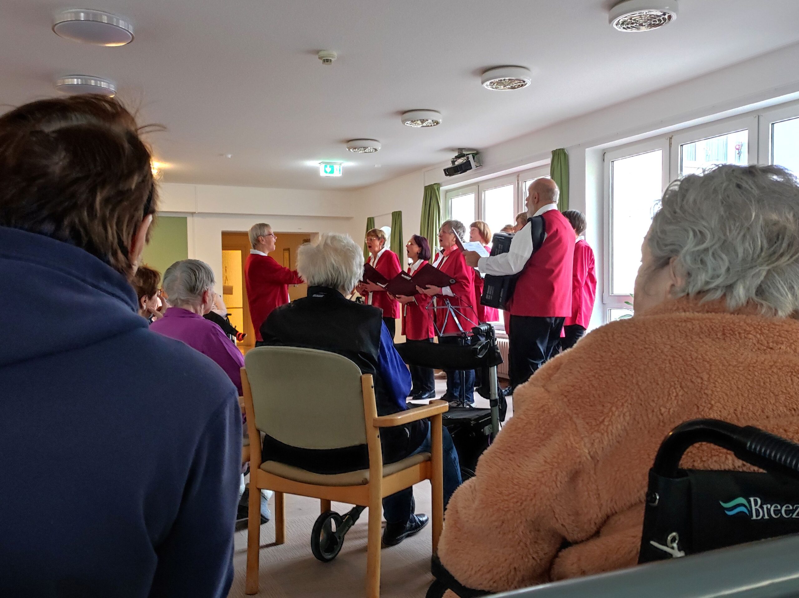 Mit saisonal angepassten Liedern, die den spätherbstlichen Charakter des Tages aufgriffen, gelang es dem Singekreis, Freude zu verbreiten und viele Zuhörerinnen und Zuhörer zum Lächeln zu bringen. Die vertrauten Melodien luden die Bewohnerinnen und Bewohner dazu ein, bei dem einen oder anderen Lied fröhlich zu klatschen, zu summen oder sogar mitzusingen.