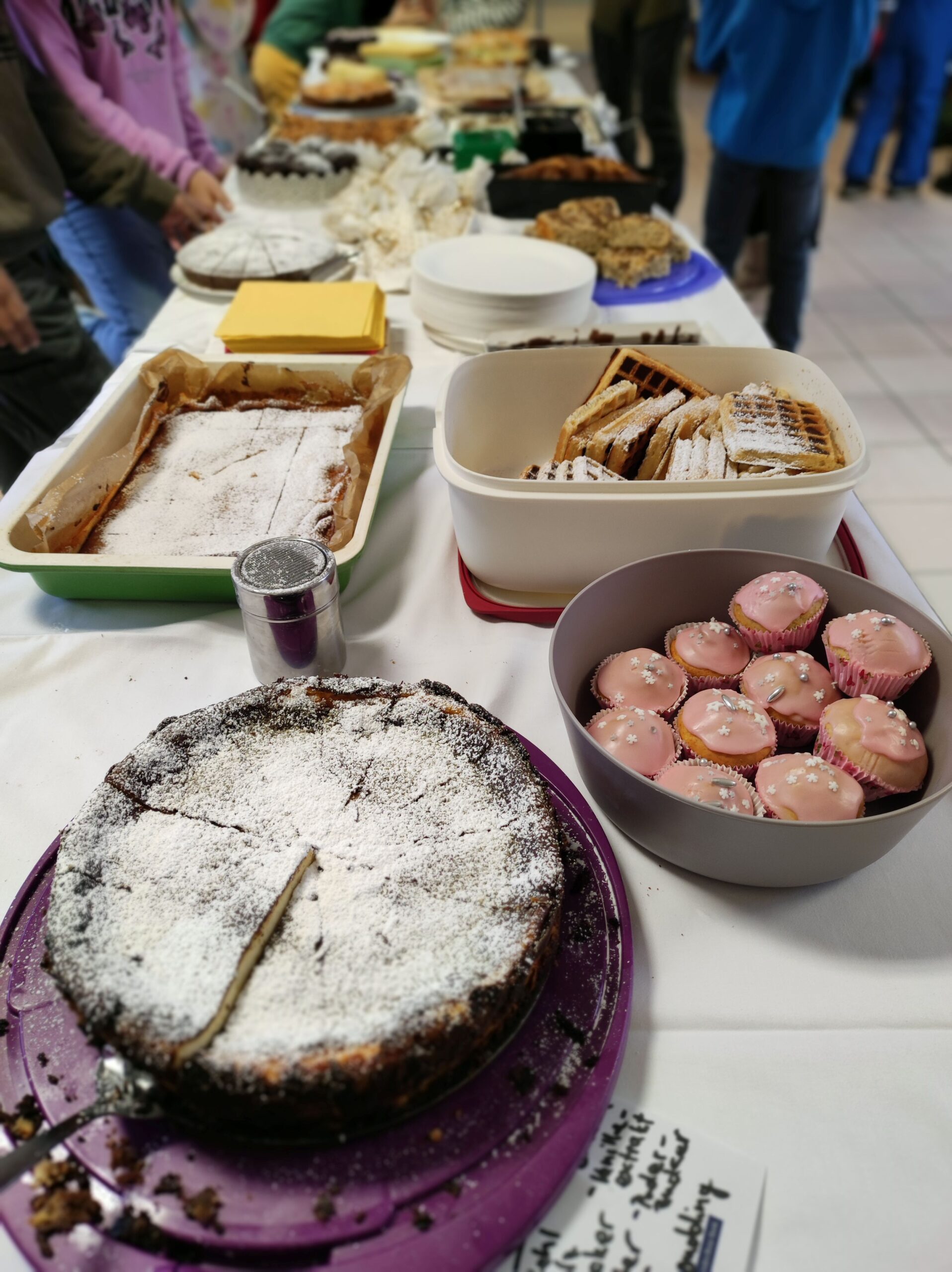 Ein Teil der Klasse organisierte im Foyer einen kleinen Kuchenbasar, bei dem die Bewohnerinnen und Bewohner, Gäste und Mitarbeitenden verschiedene selbstgebackene Leckereien erwerben konnten. Die Kinder führten den Verkauf mit großer Freude durch und sammelten so Spenden für ihre nächste Klassenfahrt.