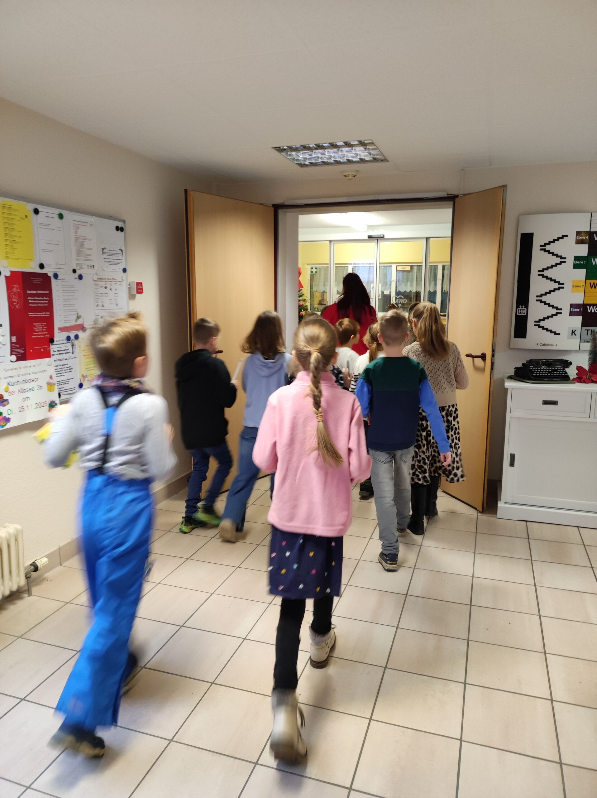 Ein besonderer Glücksfall war die Begleitung der Klasse durch den Musiklehrer, der sogar seine Gitarre dabeihatte. Spontan entstand ein kleines Weihnachtskonzert, bei dem gemeinsam bekannte Lieder angestimmt wurden. Nicht immer ganz textsicher, dafür aber mit viel Enthusiasmus und Freude sangen Kinder und Seniorinnen sowie Senioren gemeinsam – ein Moment, der alle Beteiligten spürbar miteinander verband.