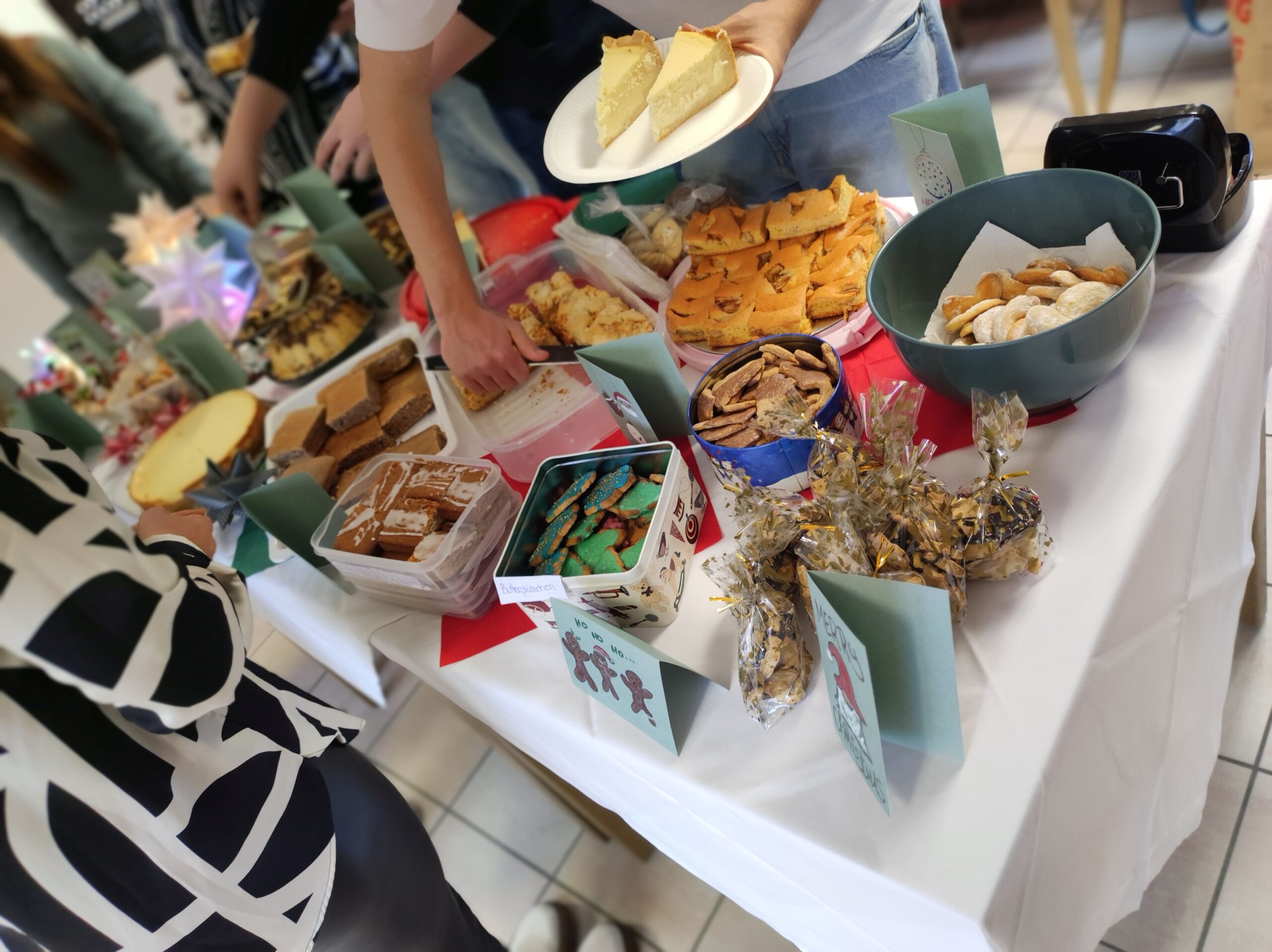 Das Angebot an Köstlichkeiten war vielfältig: Es wurden leckere hausgemachte Kuchen, duftende Plätzchen und liebevoll dekorierte Cupcakes verkauft. Darüber hinaus boten die Schülerinnen und Schüler ihre selbst gebastelten Weihnachtskarten sowie Weihnachtssterne an, die mit viel Sorgfalt hergestellt wurden.