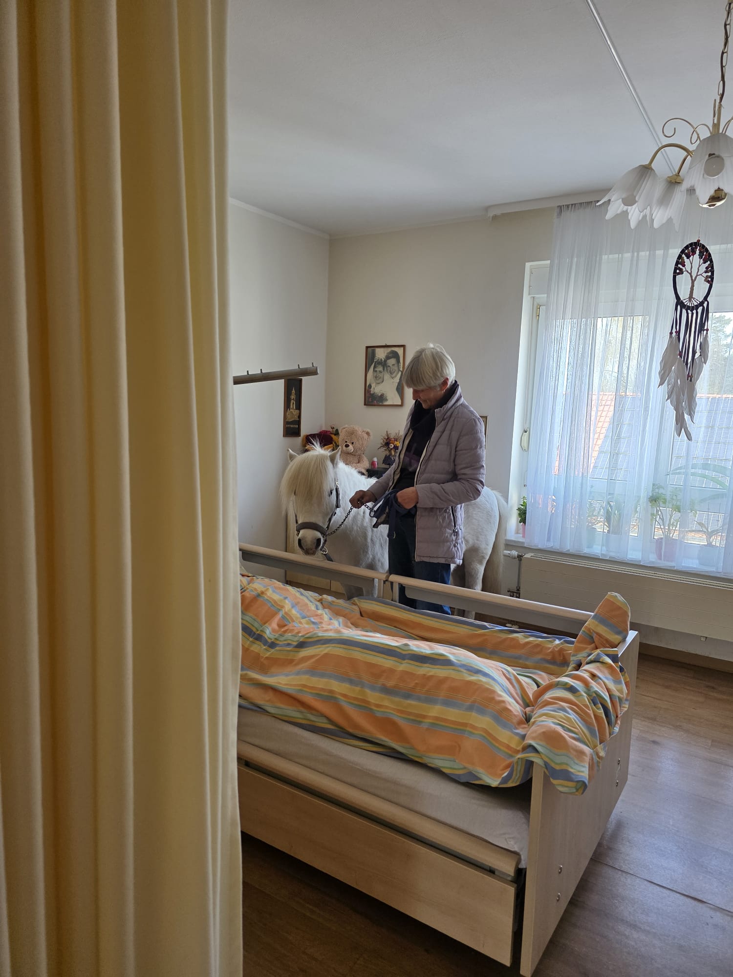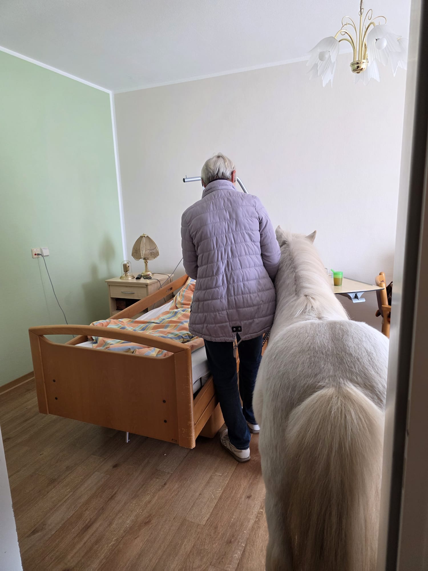 Am Vormittag des 16. April 2026 war Besuchspony Manny wieder in der AWO-Einrichtung in Wildau unterwegs und brachte viele Augen zum Leuchten. Mit seiner ruhigen Art und seinem freundlichen Wesen eroberte das kleine Pony die Herzen der Bewohnerinnen und Bewohner im Sturm.
