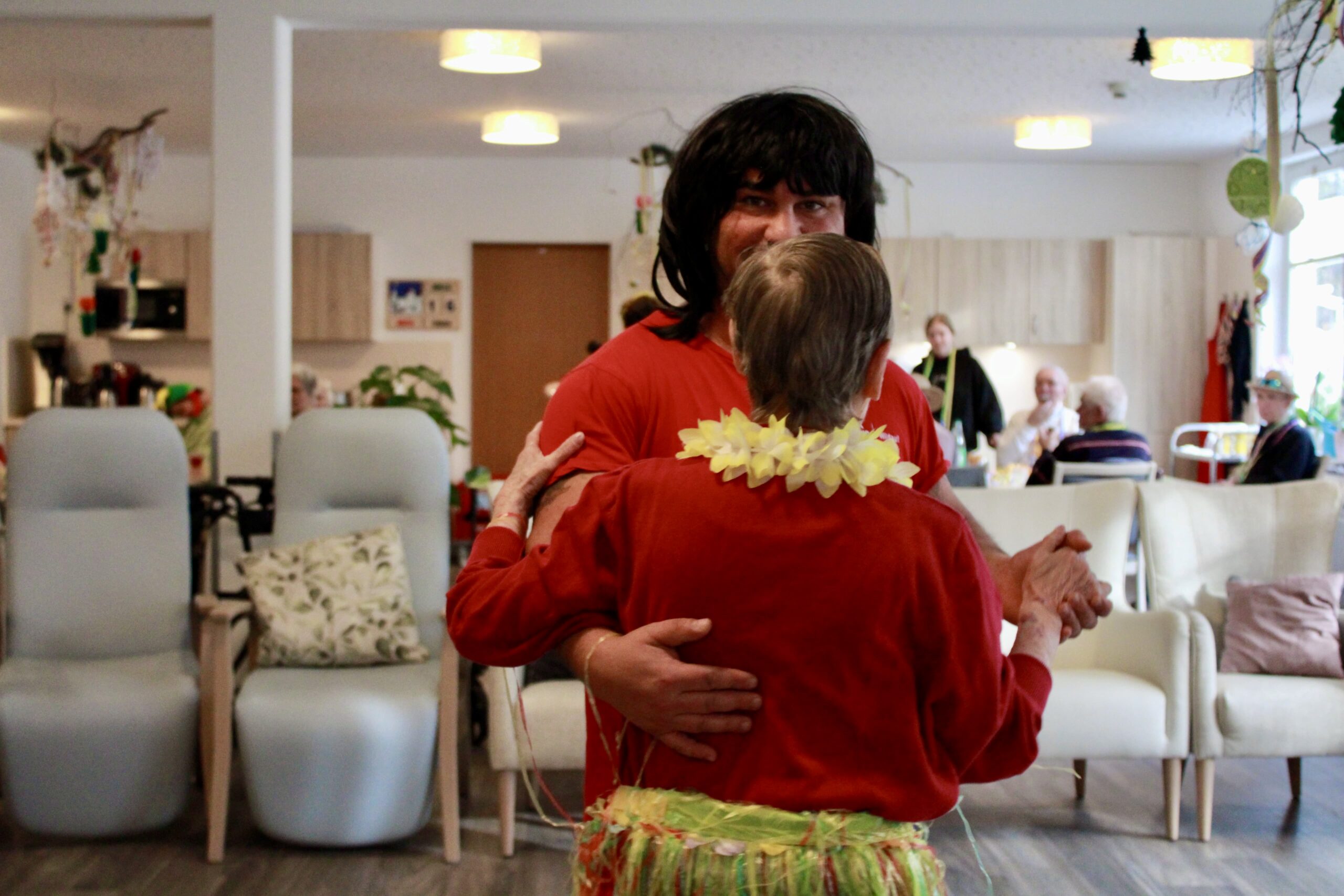 Schon beim Betreten des festlich geschmückten Gemeinschaftsaals war die ausgelassene Stimmung spürbar. Girlanden in leuchtenden Farben, Luftschlangen und selbstgebastelte Masken verwandelten den Raum in eine kleine Karnevalswelt. Viele Bewohner/innen erschienen verkleidet und sorgten für ein buntes Bild.
